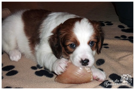 Es ist mal wieder kaum zu glauben wie schnell die Zeit vergeht. Unsere Welpen sind jetzt schon 5 Wochen alt, sie flitzen durchs Welpenzimmer, spielen, toben und raufen miteinander. Candela säugt ihre Welpen immer noch geduldig, aber das Futter aus der Schüssel schmeckt inzwischen auch allen.