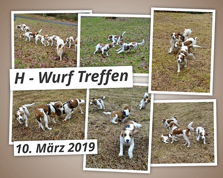 Am 20. Januar, haben wir uns mit vier Welpen aus unserem H - Wurf ( Heidi, Helena, Harry, Henry ) und ihren neuen Familien zur Welpenspielstunde im Haseltal von Bad Orb getroffen. Unsere Hedi Hummel war natürlich auch mit dabei, sowie Mama Candela, Oma Tessy und Tante Aennie. Die Hondjes haben sich alle prächtig verstanden und ausgiebig miteinander gespielt und getobt. Es war ein ganz toller Nachmittag bei herrlichem Wetter, an dem nicht nur die Hondjes sondern auch wir Menschen viel Spaß hatten.