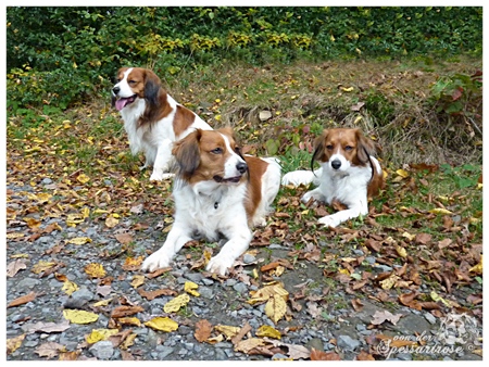 Die Wanderung führte durch den Laub- und Nadelwald. Im kooikerbraunem Laub waren unsere süßen Hondjes gut getarnt. Die Hunde tobten und rannten durch den Wald und waren wunschlos glücklich.