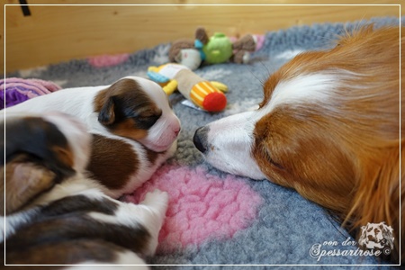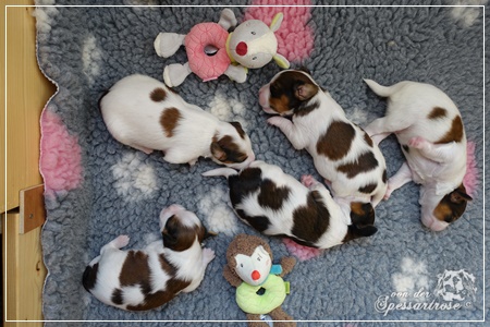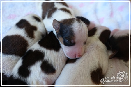 Unsere kleinen Spessartrosen sind heute acht Wochen alt. Am Freitag hatten wir Besuch von unserer Tierärztin und die Welpen wurden gechippt, geimpft und gründlich untersucht. Alle sind topfit, kerngesund und unsere Ärztin und ihre Helferin waren total begeistert. Morgen erwarten wir unsere Zuchtwartin zur Endabnahme und dann sind unsere kleinen Lieblinge bereit für ihre neuen Familien wo sie schon sehnsüchtig erwartet werden.
